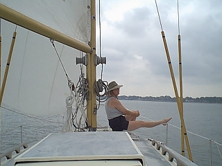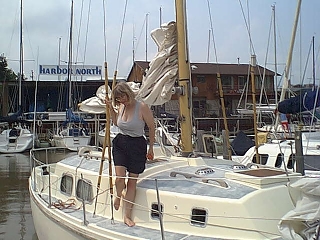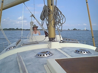 And here's Nancy at our home port in Huron, Ohio and on a sail!