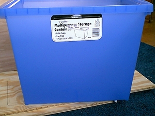 Okay, I admit it, I am an American. Our democratic principles are founded on our rights to "ice, liberty, and the pursuit of happiness" (I may not have that exactly right.) While I often offend the sensibilities of my friends by drinking warm pop and unadulterated whisky, I still believe that an efficient (though small) cooler is needed on a cruising vessel. Here's a pictorial account of the one I built for Drinian. I took the basic design from Daniel Spurr's Upgrading the Cruising Sailboat (Seven Seas Press). I did, for better or worse, make some modifications. I chose to build the box around a 9 gallon plastic tub rather than fiberglassed (GRP to my cousins) plywood. After viewing the pictures I realized that I failed to show that I used rigid foam cut in sheets and sealed with "canned" foam sealant. I used marine polyester filler to fill joints and epoxy resin (so as not to affect the styrofoam). The pictures will explain it better: