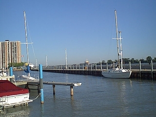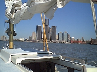My first voyage aboard Drinian was the trip from Fair Haven, Michigan which is located on the north shore of Lake St. Clair. Our destination was Huron, Ohio which is located on the south shore of Lake Erie just east of Sandusky Bay. I had been warned that the water levels have been low in recent years, and getting out into the channel would be a problem if I waited too long in the season. Fortunately, the spring rains helped our cause. On Monday, June 5, 2000 we bullied our way through the last sand bar and entered the lake. The crew consisted of my son, Court, and me. Early in the afternoon, the threatening skies opened up and brought a cold rain and gale force winds. By the time the worst hit, however, we were tucked away in a marina at the north end of the Detroit River. The next day, with the sun shining and the winds blowing at 15-20 knots we motored the river and made Lake Erie. The rest of the day was spent enjoying a boat that was longing to be sailed. By late afternoon we had sailed and surfed our way to Put-In-Bay, located on South Bass Island.